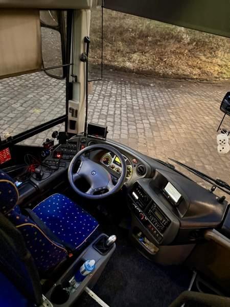Wyposażenie: klimatyzacja, video, WC, lodówka, caffebar, oświetlenie indywidualne, nawiewy dyszowe, podnóżki, stoliczki, siateczki, ABS, ASR, tempomat, retarder, CD, mikrofon, radio, fotele odchylane i rozsuwane, centralny zamek, podwójne szyby boczne, wspomaganie kierownicy, aluminiowe felgi, elektryczne lusterka, ogrzewanie stacjonarne, DVD, ESP